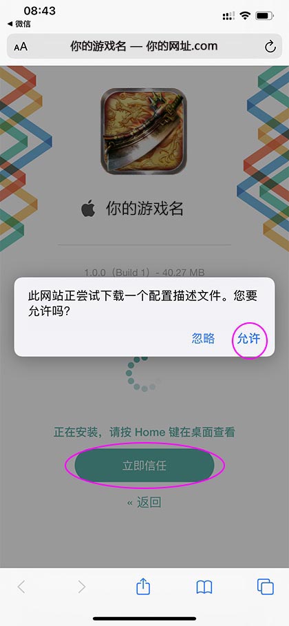 第一步 点击立即信任,在信任的提示中,选择“允许”,如图:
