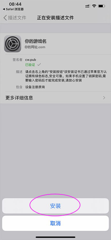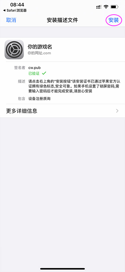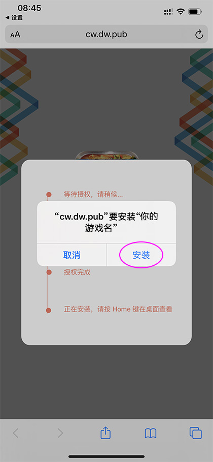第二步 在"cw.dw.pub"要安装这个游戏,选择“安装”,如图: